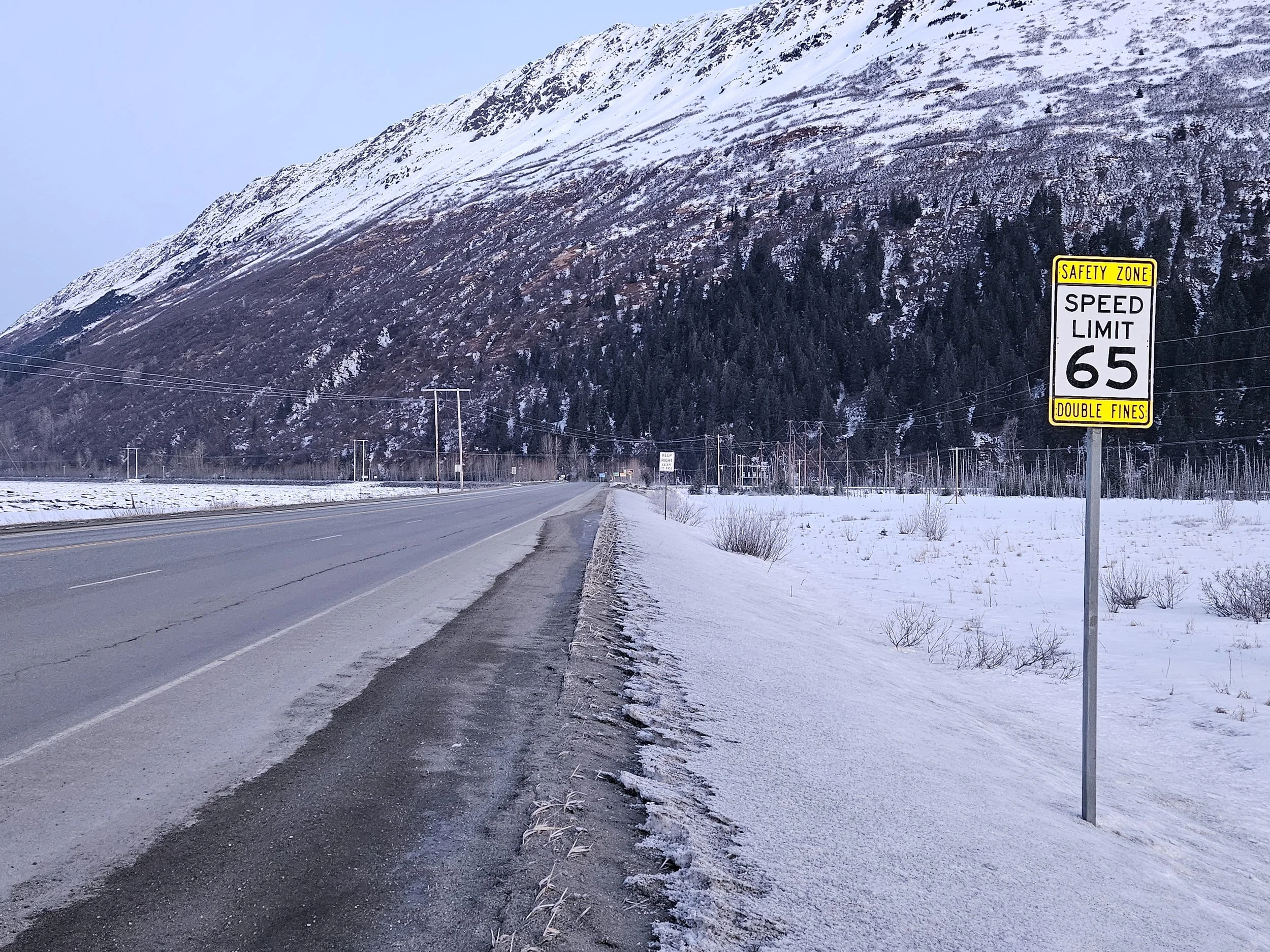 One of the two projects is looking for vendors to plan and design variable speed limit (VSL) signs for the Seward Highway from milepost 90 to milepost 118, or approximately from Girdwood in the south to Rabbit Creek Road in the north. This encompasses the entire area of the Safer Seward Highway project plus nine additional miles. VSL signs allow the DOT to modify the speed limit of the Seward Highway electronically, particularly in adverse conditions such as winter weather. This work will be paired with VSL installations on the Richardson Highway near Fairbanks.