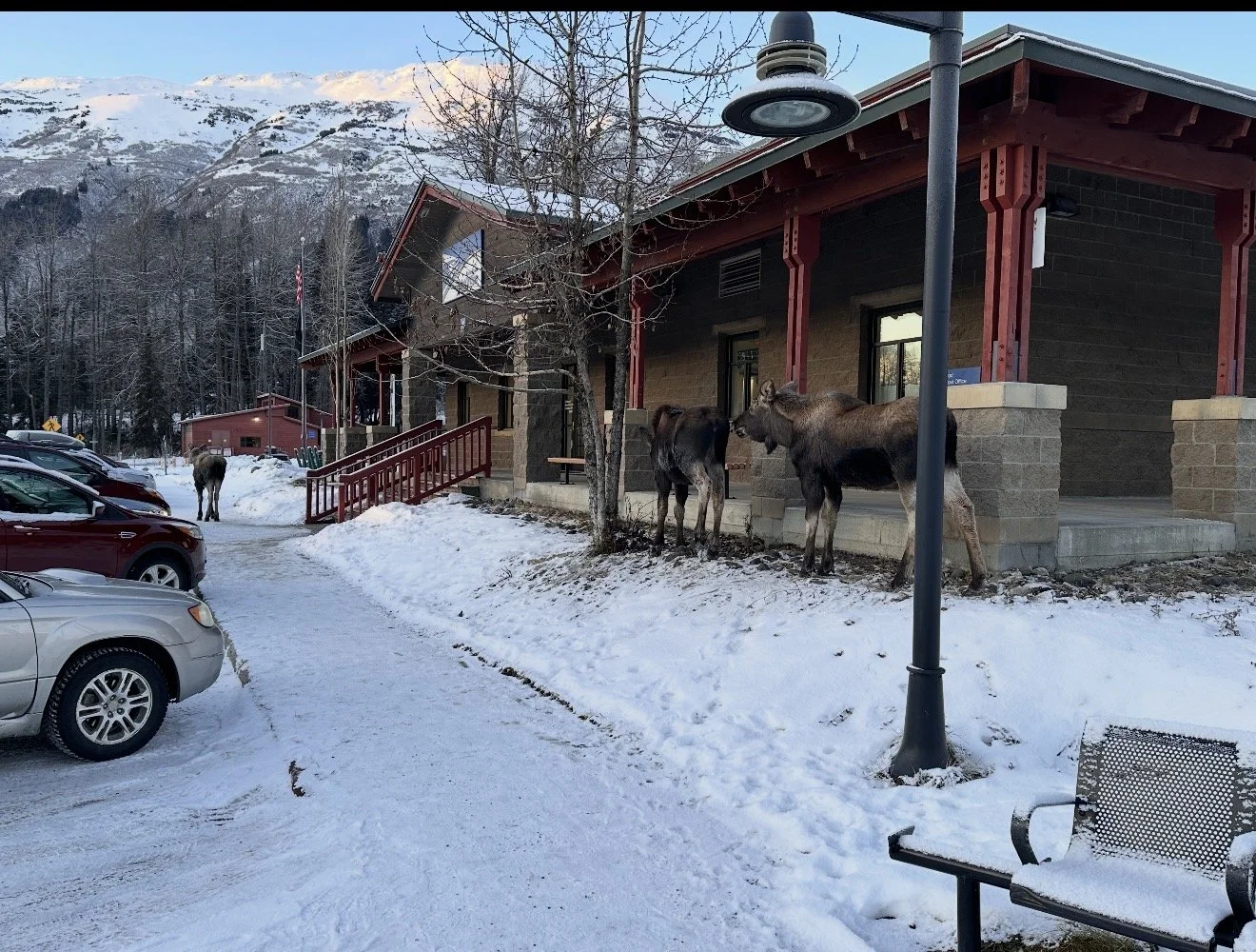 Three of four young calves nibble at trees around the post office. (Photo by Soren Wuerth).
