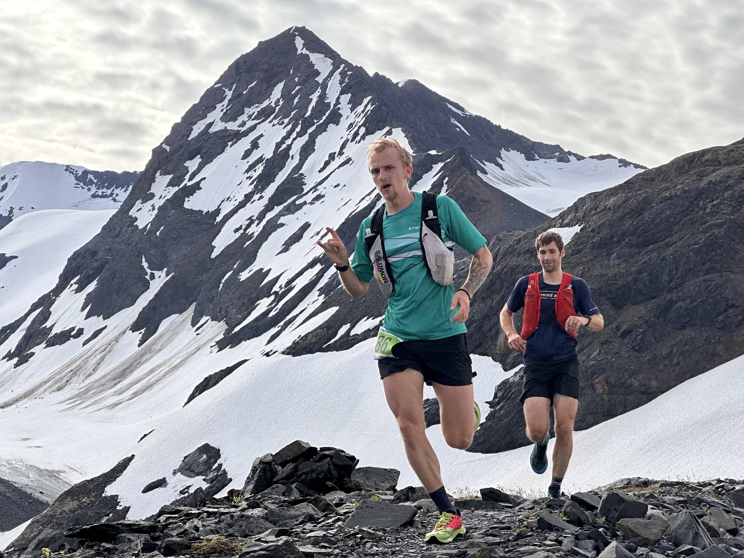 The first runner to the pass descends into the Raven Glacier outwash. (Photos by Soren Wuerth)