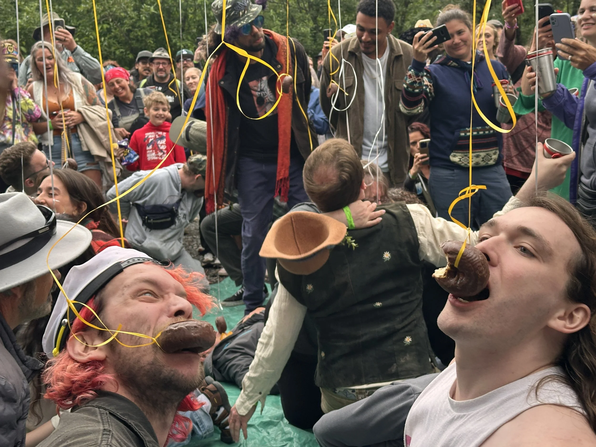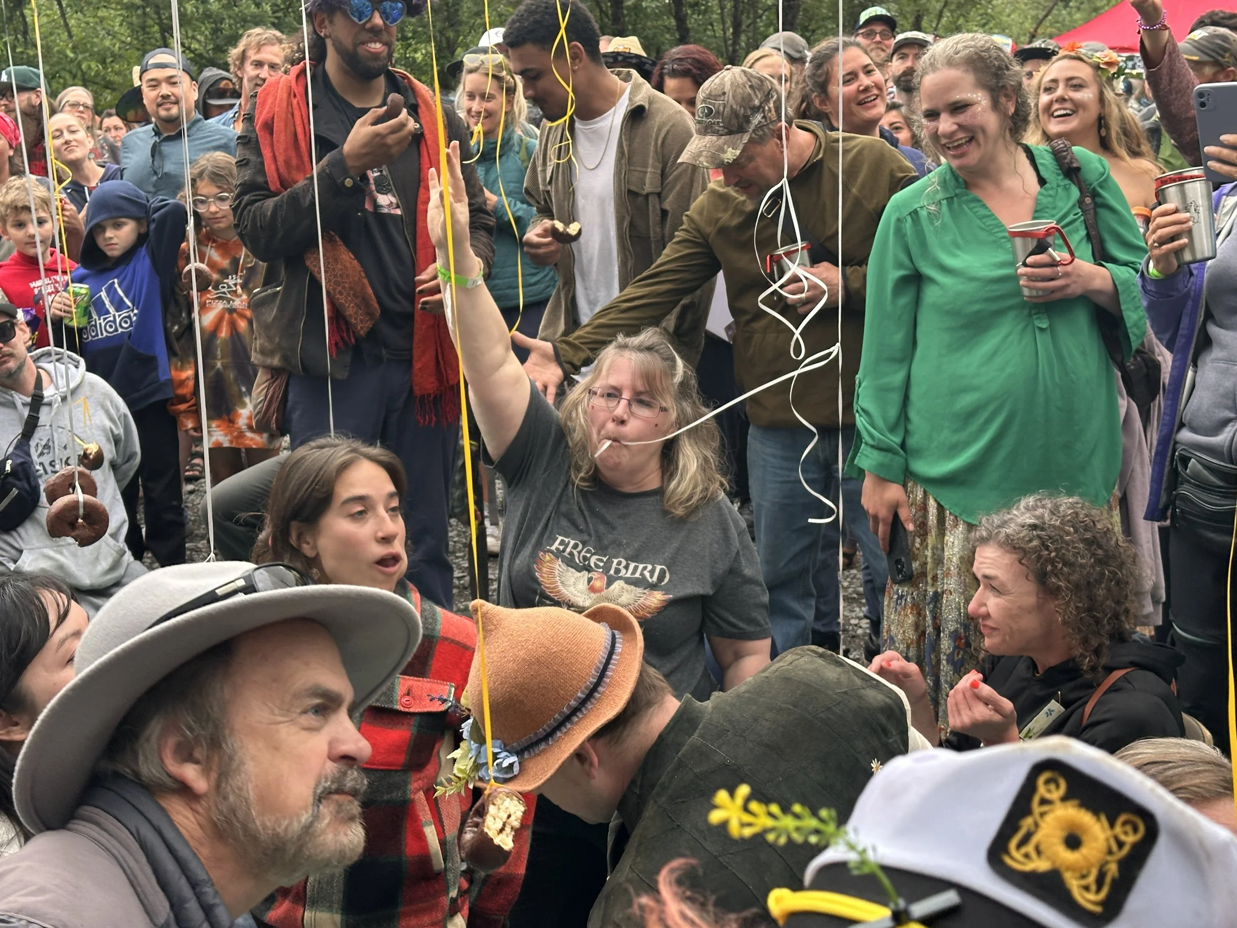The 2025 Forest Fair Donut Eating Contest was held Saturday afternoon. A couple of the competitors above were outdone by Kim Kleman who won the event while spending her first day in Alaska from Antigo, Wisconsin. “This is way beyond anything I thought it would be,” she remarked. When asked about her strategy? “Slam against the head of the guy next to me and eat it!”she exclaimed. “I love doughnuts.”