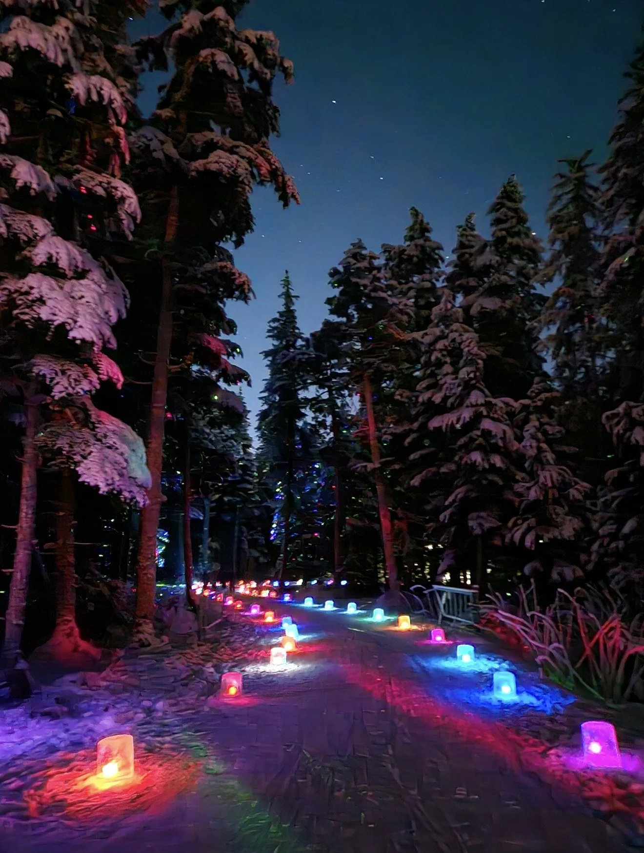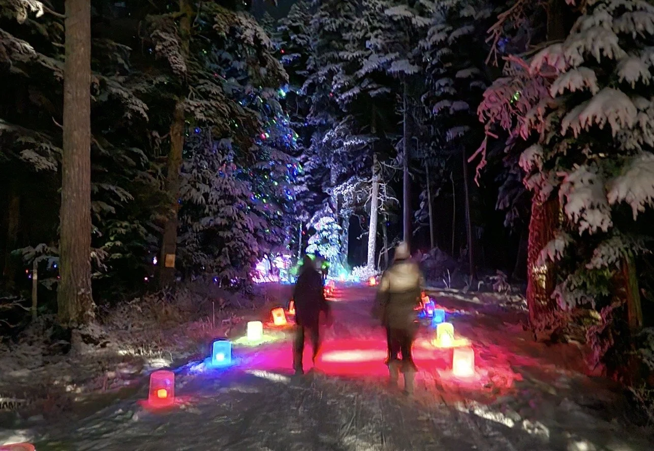 The illuminated 2K trail departing from the main kiosk. (Photo by Chase Berenson)